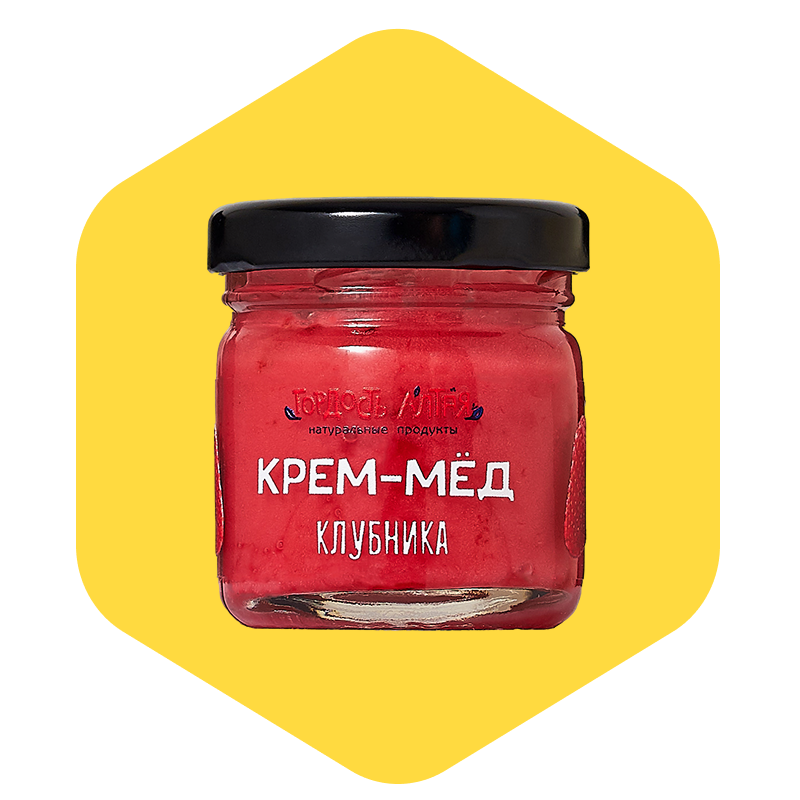 Крем-мёд с клубникой — это натуральный десерт на основе цветочного алтайского мёда с добавлением настоящей клубники. Благодаря технологии холодного взбивания, мёд приобретает лёгкую кремовую текстуру, а ягода придаёт ему натуральный аромат, розовый оттенок и сбалансированную ягодную сладость с лёгкой кислинкой. В составе используются кусочки или лиофилизированная клубника, без ароматизаторов, красителей или добавленного сахара. Такой мёд особенно нравится детям, подходит для здорового питания и может заменить варенье, джем или сладкие намазки.
